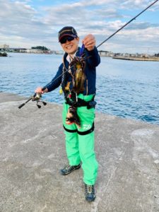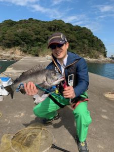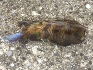 O先生、チヌ42㎝と餌木でアオリ600g前後×2杯。私は、アオリ同サイズ3杯。